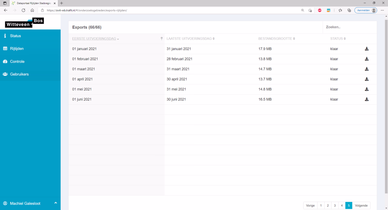 Na het inloggen zie je een scherm waar je per maand gegevens kunt downloaden: