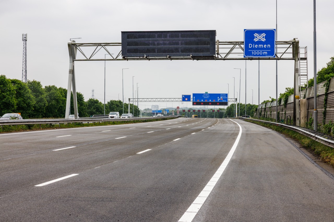 Dickmann legt uit: “Voordat we begonnen met de werkzaamheden aan de A1, hebben we al aanpassingen aan de Gaasperdammertunnel gedaan, zodat daar meer verkeer doorheen kon. We hadden dus niet zomaar een omleidingsroute gekozen, maar echt iets aangepast om het verkeer goed te kunnen laten doorstromen.”