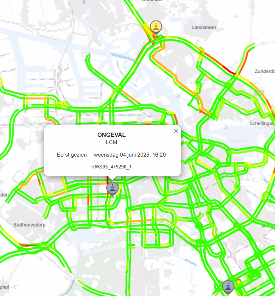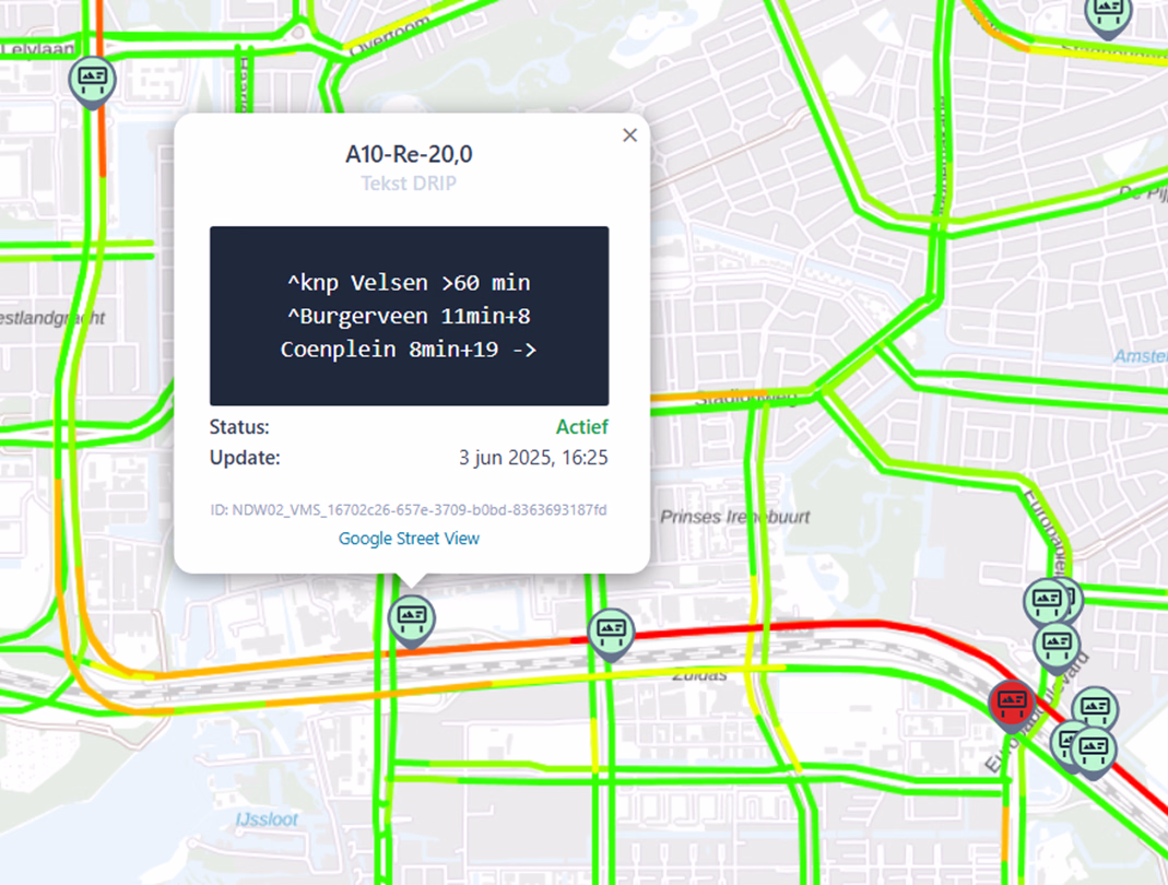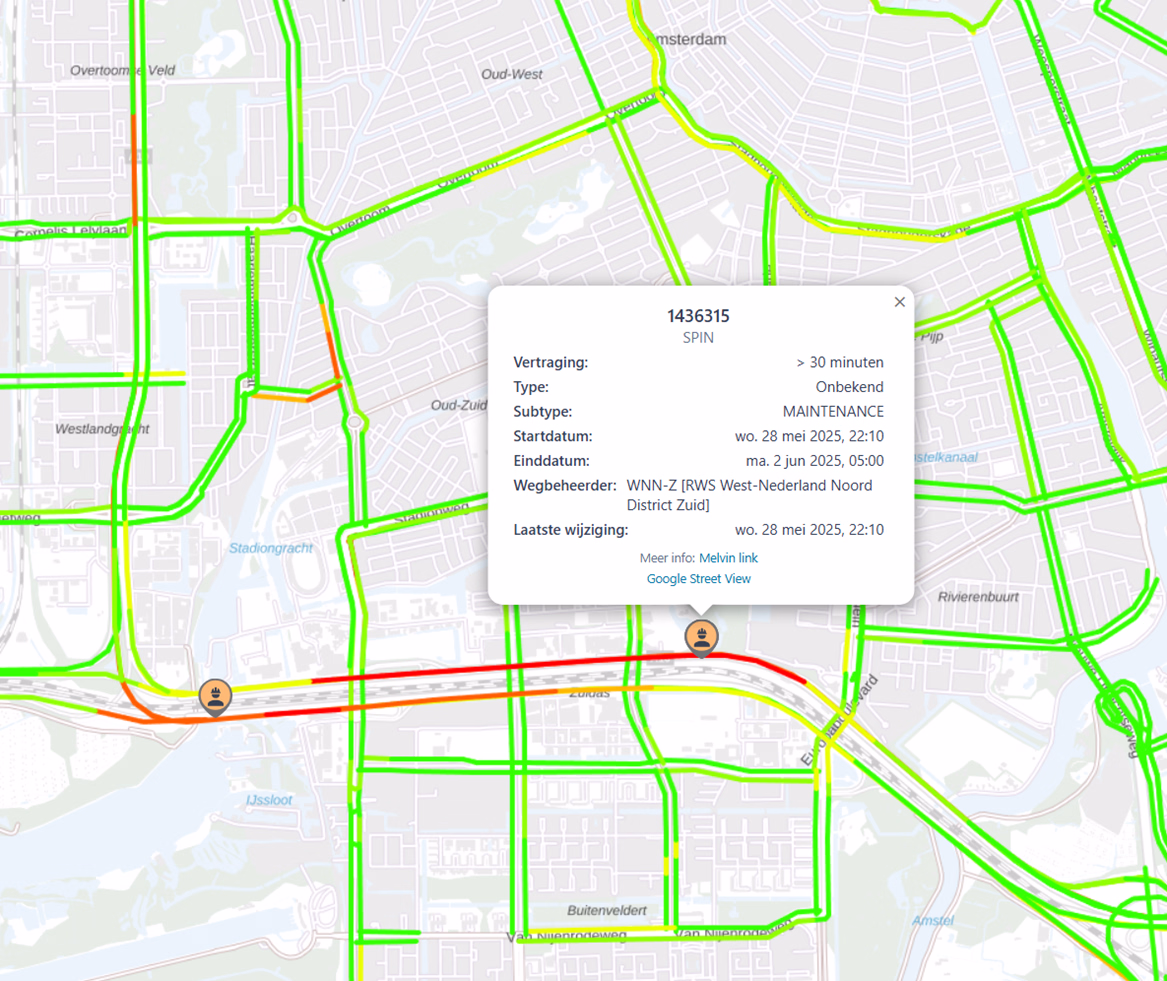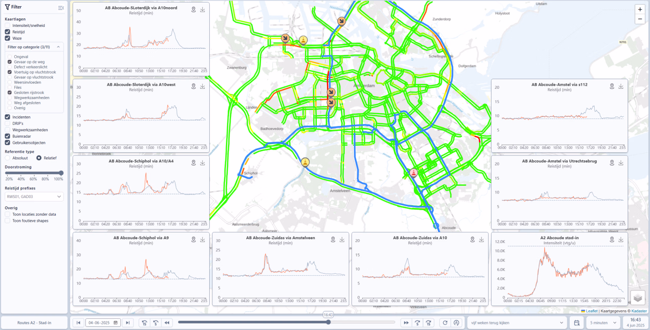 De viewer laat zien hoe de actuele verkeerssituatie op dit moment is op basis van snelheden op het netwerk (Google-maps-style). Tevens kan er door middel van datum- en tijdskeuze ook teruggekeken worden naar de verkeerssituatie in het verleden.