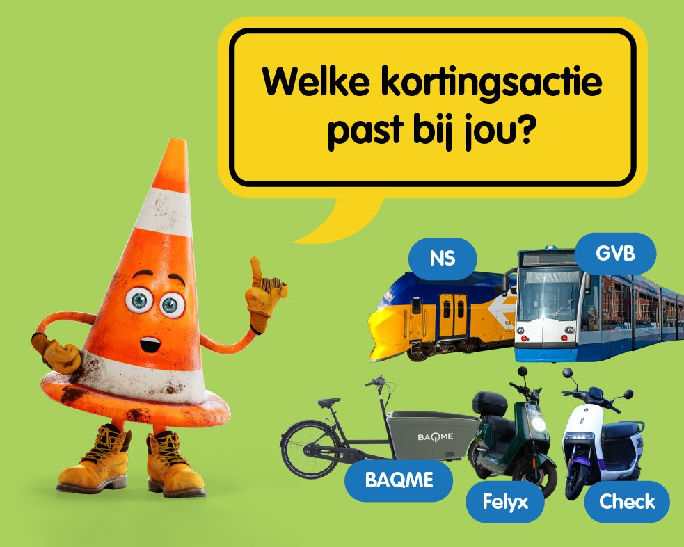 Krijg jij te maken met de werkzaamheden, en zoek je manieren om verkeershinder te vermijden? We bieden verschillende kortingsacties aan voor het ov en deelvervoer. Voor als je momenteel meestal de auto pakt, maar ook als je nu al met het ov reist.